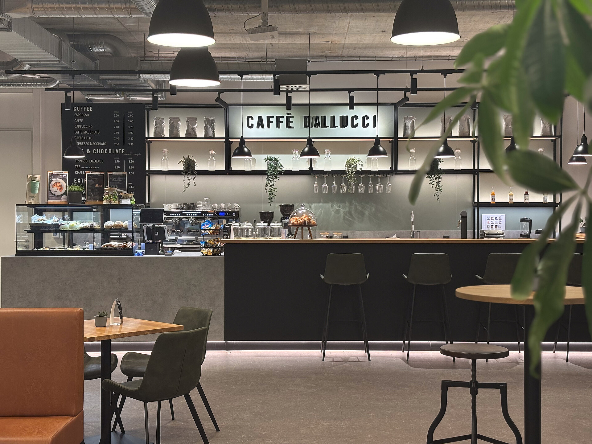 Im Caffè Dallucci trifft Kaffeegenuss auf New Work: In gemütlichem, modernem Ambiente entstehen Räume für Austausch, Kreativität und Fokus. Hier kommen Menschen nicht nur für einen Espresso – sie bleiben für das Miteinander.